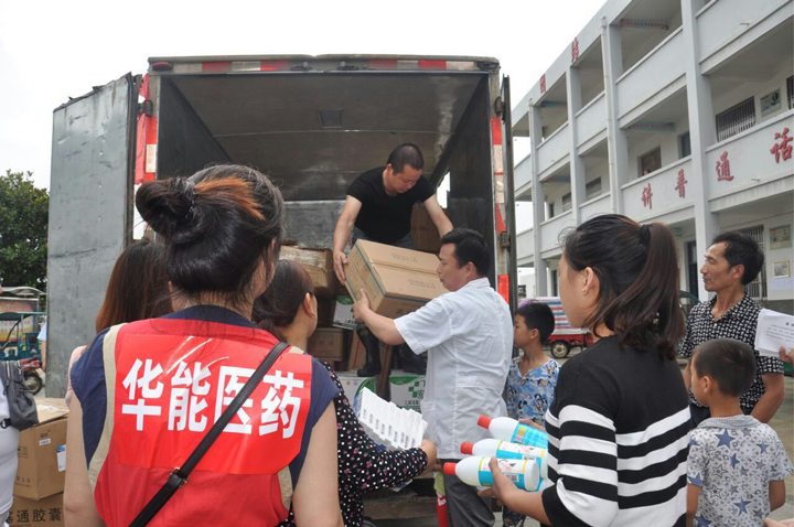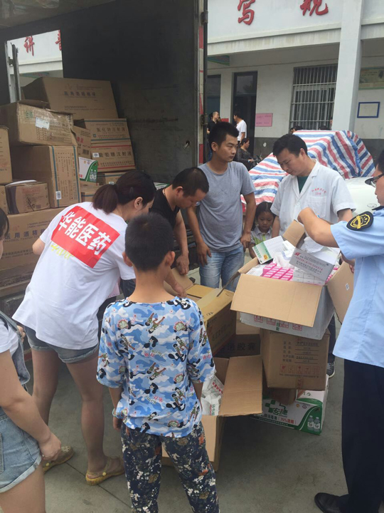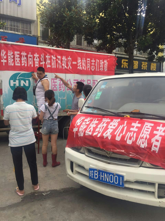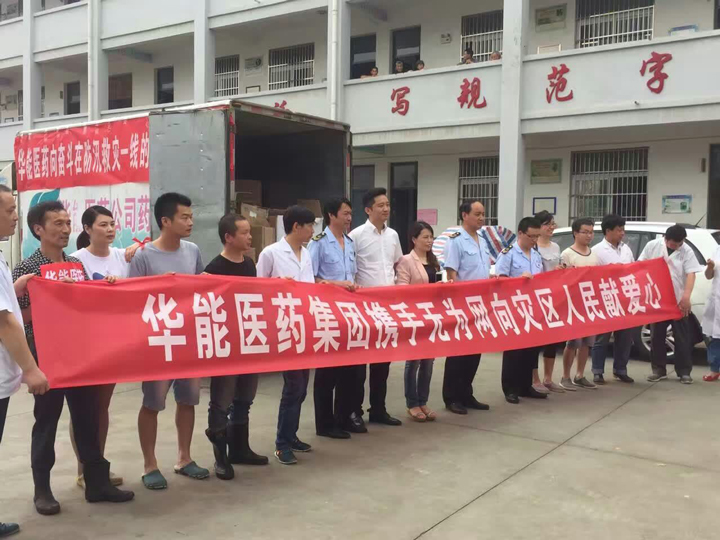 洪水無情人有情,風(fēng)雨中我們不是個人在戰(zhàn)斗!2016年7月3日下午,安徽華能醫(yī)藥有限責(zé)任公司總經(jīng)理何義文帶員工攜手無為網(wǎng)奔赴無為縣受災(zāi)嚴(yán)重的嚴(yán)橋鎮(zhèn)、紅廟鎮(zhèn)、鳳河中學(xué),向他們捐贈應(yīng)急急救藥品物資,奉獻(xiàn)他們的愛心!公司總經(jīng)理何義文表示,華能醫(yī)藥公司作為無為縣唯家藥品批發(fā)企業(yè),我們有責(zé)任為廣大受災(zāi)群眾送溫暖、作貢獻(xiàn),其它鄉(xiāng)鎮(zhèn)因災(zāi)需要急救藥品物資的,我們將全天候免費供應(yīng),并配送至需要的地區(qū)!