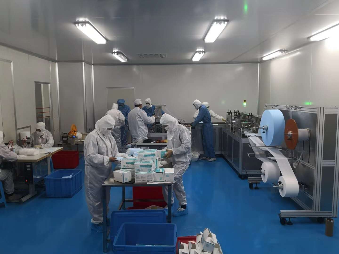 華能醫(yī)藥于2月10日開始籌備口罩生產項目,在設備、原材料緊缺等不利條件下,利用自身已有的高標準的潔凈生產廠房的勢,爭分奪秒建設口罩生產線。為了搶抓進度,盡快建成投產,在華能集團、華能橡膠幫助下,華能醫(yī)藥各部門通力合作、緊密部署,車間改造、原料及設備采購、人員培訓、審批手續(xù)辦理等各項工資同步進行。由于疫情影響,口罩機生產設備廠家供貨出現交貨不及時的現象,延遲了交貨期近15天,經過多方面努力,設備于3月11日凌晨可靠抵廠,公司連夜組織卸車、安裝,12日開始調試,13日正式生產,目前新啟動的醫(yī)用口罩生產線日產6萬只,待進步完善后將日產10萬只。