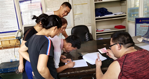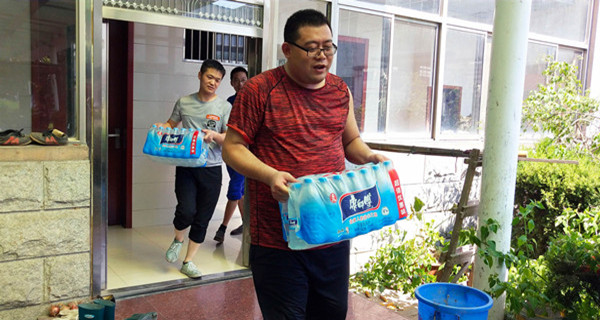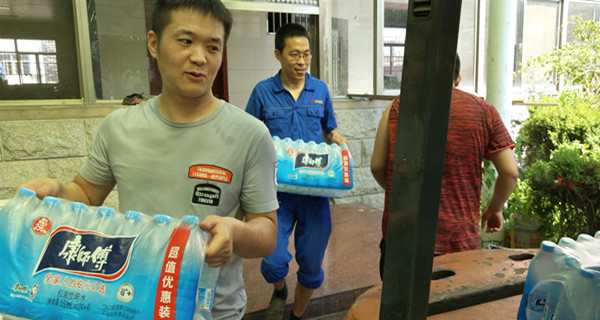 為員工發(fā)放礦泉水